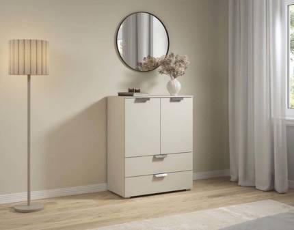Comoda cu 2 usi si 4 sertare ADITIO 140x81x42cm alb alpin/ alb lucios