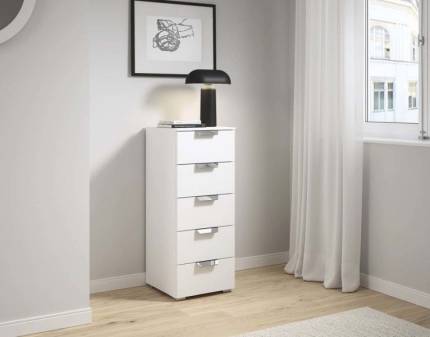 Comoda cu 4 sertare ADITIO 93x81x42cm alb alpin/ alb lucios