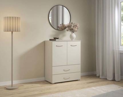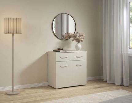 Comoda cu 2 usi si 2 sertare ADITIO 93x119x42cm alb alpin/ alb lucios