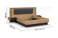 Cadru pat cu led si noptiere incorporate BILBAO (180x200cm) stejar artisan/ gri metalic - ecopiele neagra