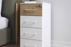 Colectia impresioneaza prin design modern, finisaj alb alpin si aplicatii stejar artisan Boston Extra combina eleganta cu functionalitatea, fiind perfect pentru un dormitor modern si armonios.