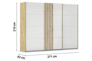 Dulap cu usi glisante MOSBACH 271x210x62cm stejar Artisan/ sticla alba
