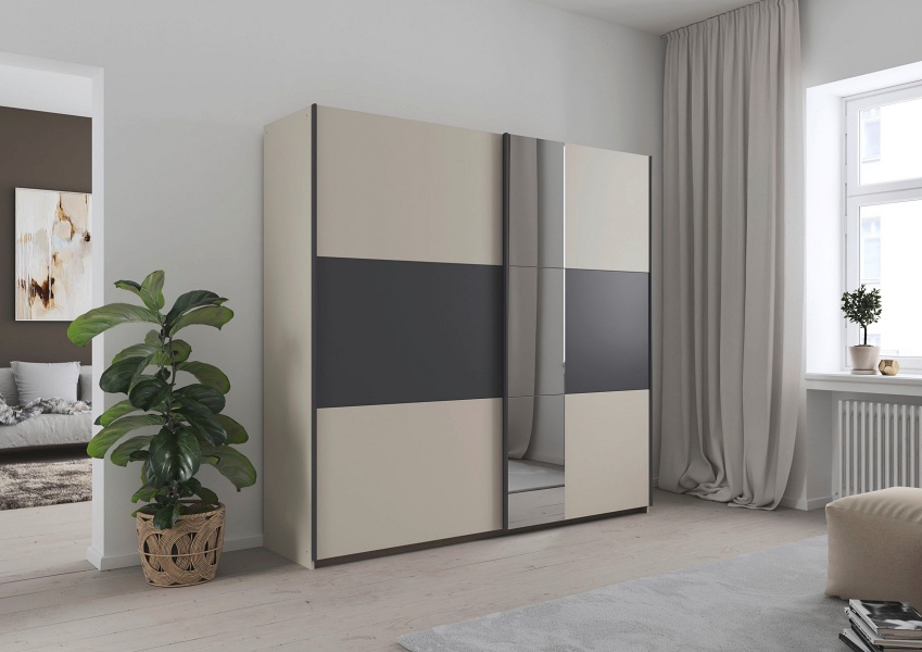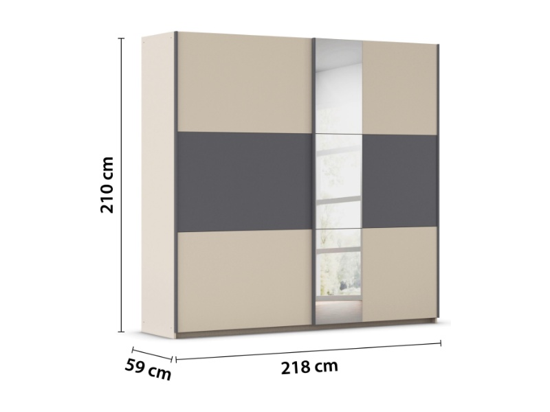 Dulap SAJO 218x210x59cm champagne/ gri metalic - oglinda