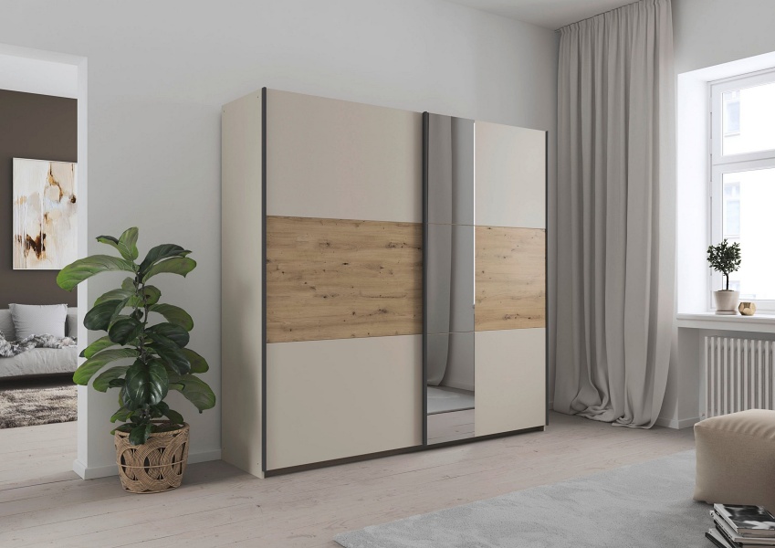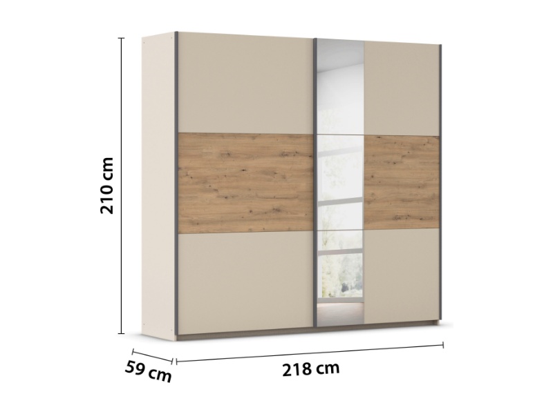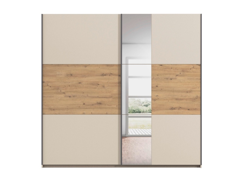 Dulap SAJO 218x210x59cm champagne/ stejar Artisan - oglinda