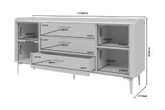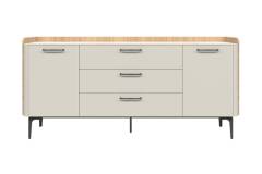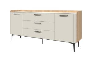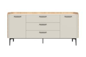 Comoda cu 2 usi si 3 sertare AIR 175x83x48cm Pepper White/ Stejar Furneo - sticla cu model de marmura Calcatta Oro, cadru, manere si picioare Antracit