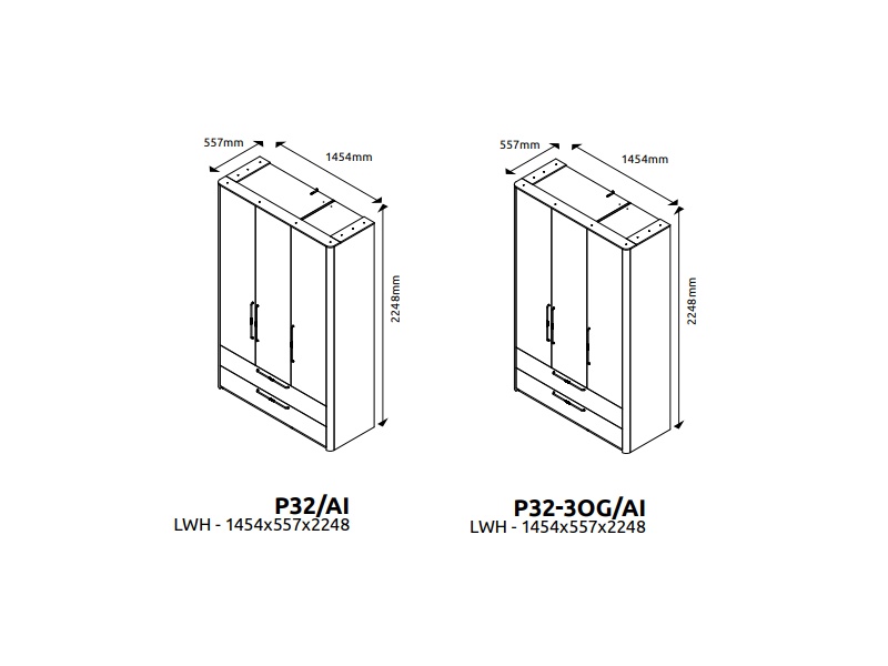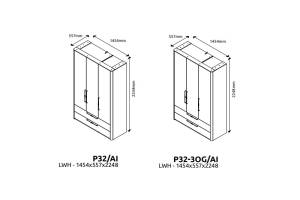 Dulap cu 3 usi cu balamale si 2 sertare AIR 146x225x56cm Pepper White, manere antracit