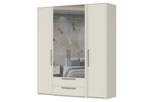 Dulap cu 4 usi cu balamale si 2 sertare AIR 187x225x61cm Pepper White/ oglinda, manere antracit