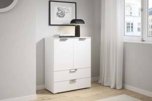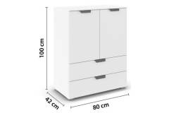 Comoda cu 2 usi si 2 sertare ADITIO 80x100x42cm alb alpin, manere crom