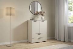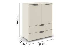 Comoda cu 2 usi si 2 sertare ADITIO 80x100x42cm champagne, manere crom