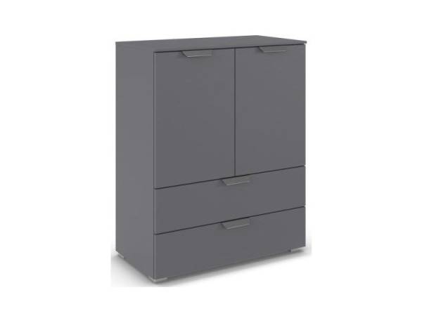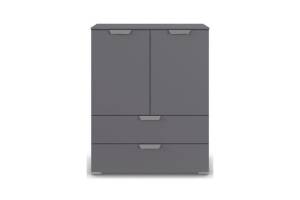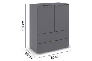 Comoda cu 2 usi si 2 sertare ADITIO 80x100x42cm gri metalic, manere crom