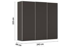 Dulap cu usi glisante TARO 242x223x69cm grafit, maner aluminiu