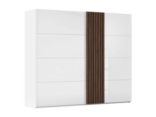Dulap cu usi glisante TEGIO 262x223x69cm alb alpin/ sticla alba - Walnut