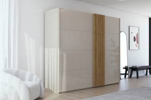 Dulap cu usi glisante TEGIO 262x223x69cm champagne mat/ sticla champagne - stejar Wild