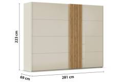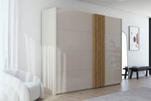 Dulap cu usi glisante TEGIO 281x223x69cm champagne mat/ sticla champagne - stejar Wild