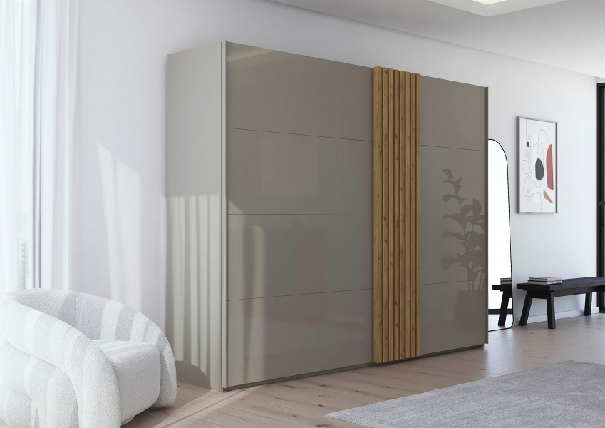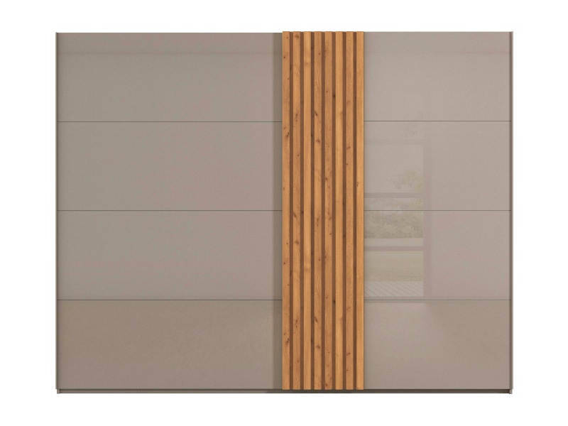 Dulap cu usi glisante TEGIO 281x223x69cm fango mat/ sticla fango - stejar Wild