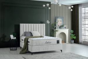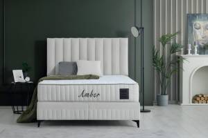 Pat tapitat cu saltea si spatiu pentru depozitare AMBER (160x200cm) cream