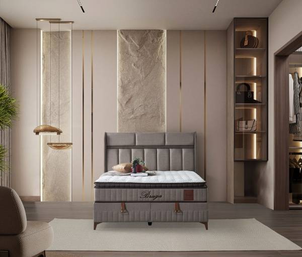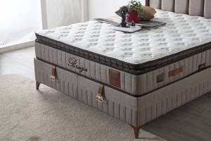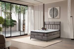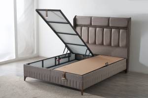 Pat tapitat cu saltea si spatiu pentru depozitare BRAGA (200x200cm) cappuccino