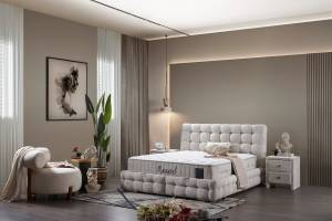 Pat tapitat cu saltea si spatiu pentru depozitare MONART (180x200cm) cream