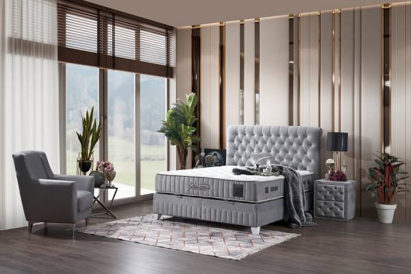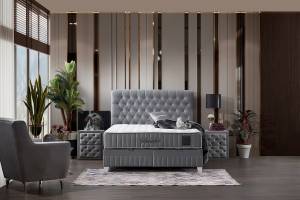 Pat tapitat cu saltea si spatiu pentru depozitare SENSITIVE (160x200cm) grey
