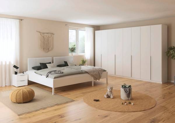 Cadru pat cu tablie tapitata MARE (270x200cm) alb alpin, material textil grey