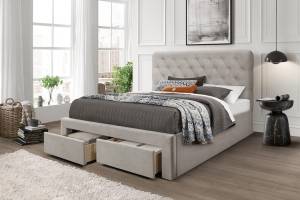 Pat tapitat cu somiera si sertare pentru depozitare MARISOL (160x200cm) catifea beige