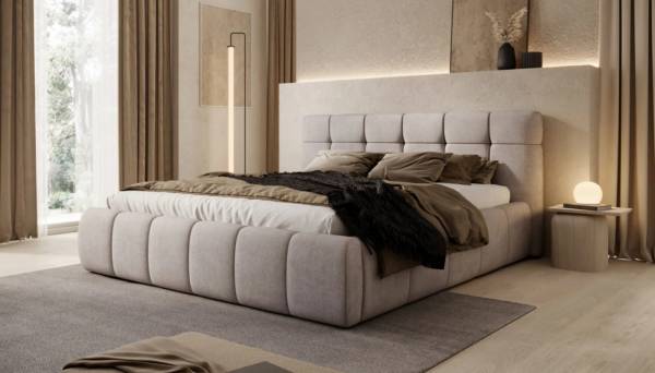 Pat tapitat cu somiera si spatiu pentru depozitare MELISSA 140/ 160/ 180cm personalizabil