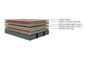 Saltea: Saltea cu arcuri tip POCKET SPRING + 2 x 50DNS BONDEX FOAM (spuma) + MIKRO POCKET SPRING + FLEXY FOAM (spuma)