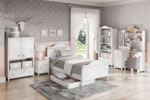 - cele 2 sertare pentru depozitare de sub pat sunt prevazute cu role