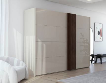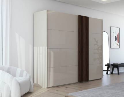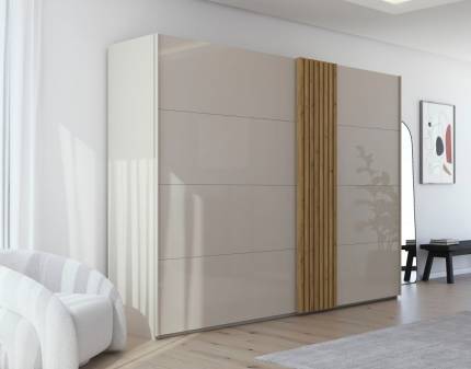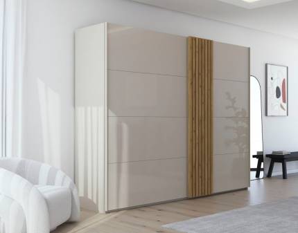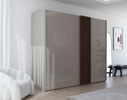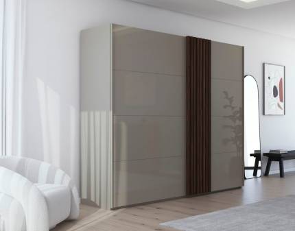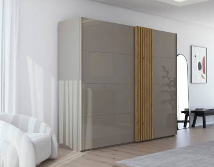 Dulap cu usi glisante TEGIO 262x223x69cm fango mat/ sticla fango- stejar Wild